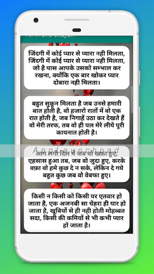Hindi Shayari application Contain brings best collection of Hindi and English Shayari.