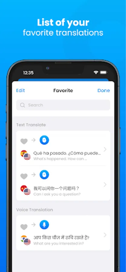 - Language Learning: Star and save translated words and phrases for easy language learning and retention.