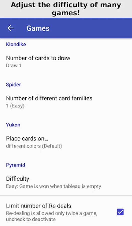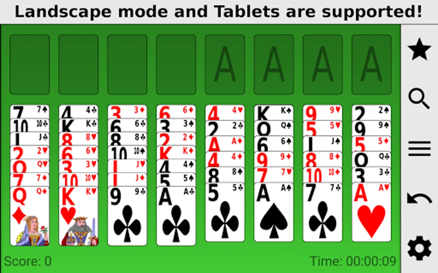 "Addiction Solitaires" is the collection of 20 most popular solitaire games: AcesUp, Calculation, Canfield, Forty&Eight, FreeCell, Golf, Grandfather's Clock, Gypsy, Klondike, Mod3, Napoleon's Tomb, Pyramid, SimpleSimon, Spider, TriPeaks, Vegas and Yukon!