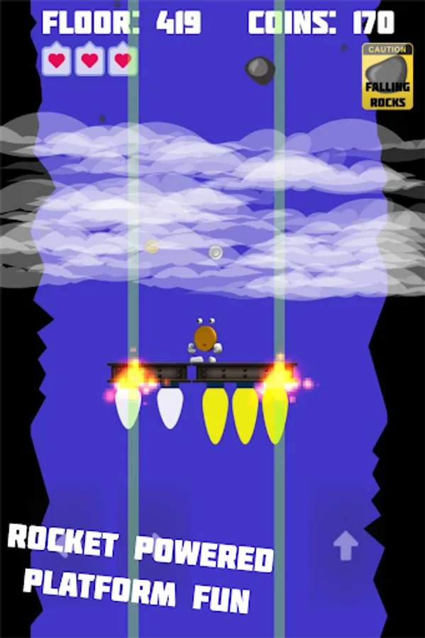 - Collect coins and use them in the store to upgrade your rocket powered platform.