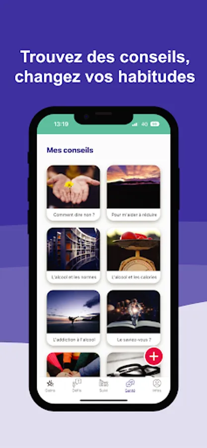 In this application, you will find steps to follow, advice and specific scientifically validated information to support you. These articles are developed by professionals from the Oz Ensemble team to teach you how to manage difficult situations and help you meet your goals to reduce your consumption or say stop to alcohol.