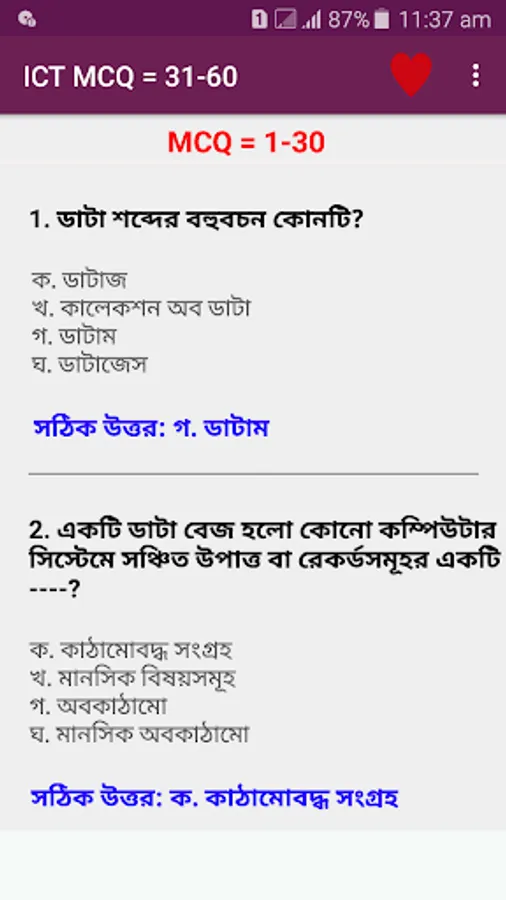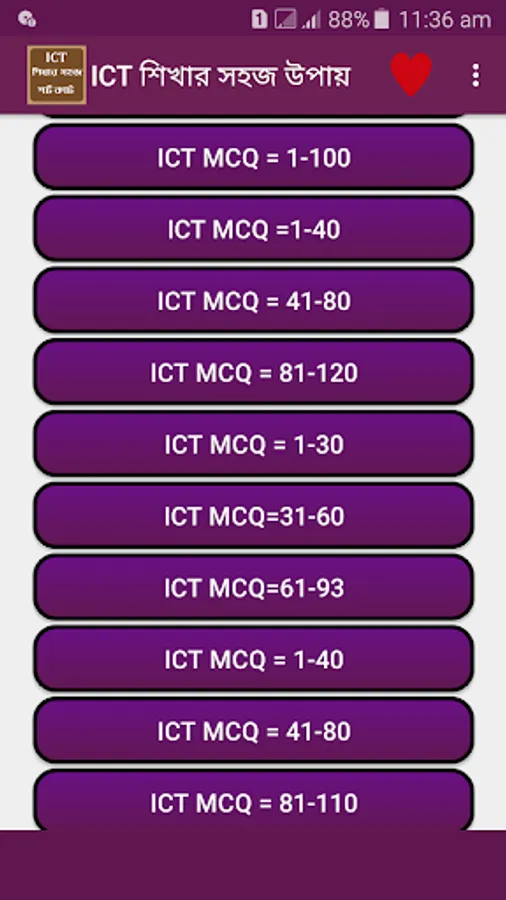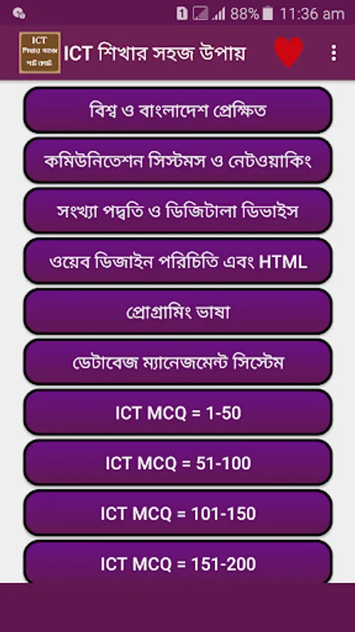 এইচ এস সির তথ্য ও যোগাযোগ প্রযুক্তি বইয়ের এর সকল অধ্যায়ের এম সি কিউ নিয়া এই এপ্লিকেশনটি বানানো হয়েছে।চাকুরী পরীক্ষা যেমন বিসিএস, ব্যাংকসহ সকল পরীক্ষায় সহায়ক ভূমিকা পালন করবে।