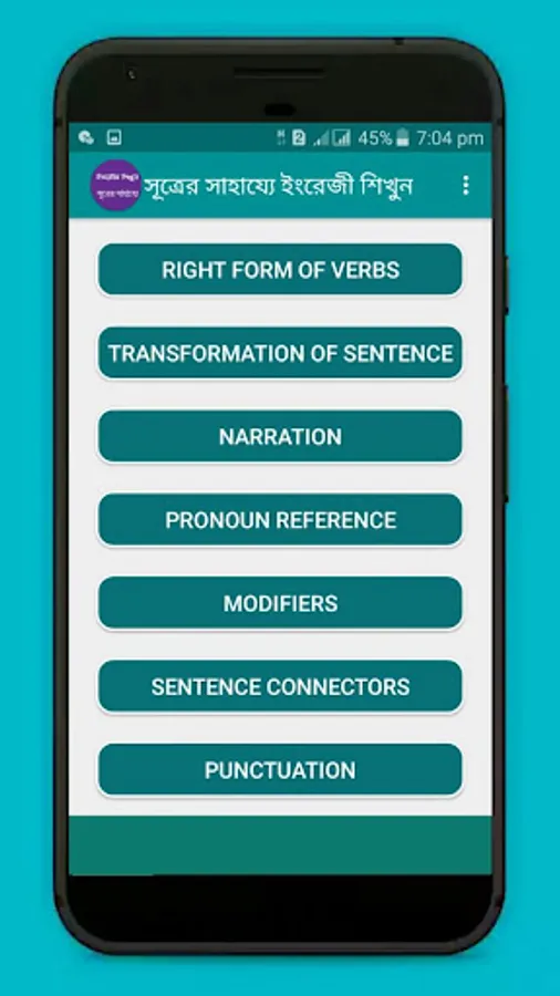 ইংরেজি শিখতে হলে আপনাকে সবার আগে ইংরেজি গ্রামার শিখতে হবে । যেকোন ভাষা সঠিকভাবে শিখতে হলে আপনাকে ওই ভাষার ব্যাকরণ শিখতে হবে । স্পোকেন ইংলিশ থেকে শুরু করে সব কিছুর জন্য আমাদের ভাল করে ইংরেজী শেখা উচিত। তাই আমরা আপনাদের জন্য ইংলিশ ব্যাকরণ বই থেকে জরুরী সব ইংরেজি গ্রামার নিয়ে এই অ্যাপটি তৈরি করেছি ।