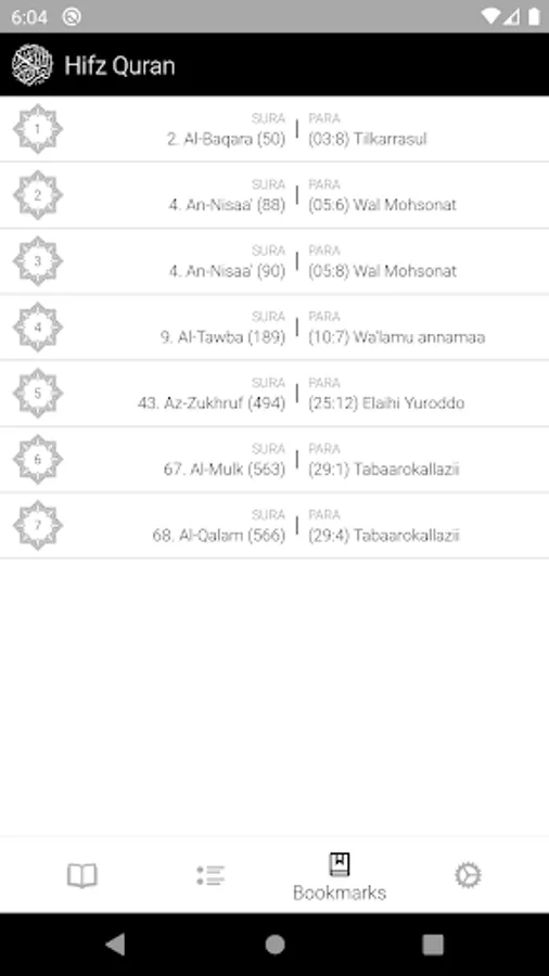 The application makes easy to find out Suras from the 15 lines Hefz Quran Sharif. Saudi Print with full Audio included. The application includes Audio, Sura index, Para index, Go-to page, Bookmarks features.