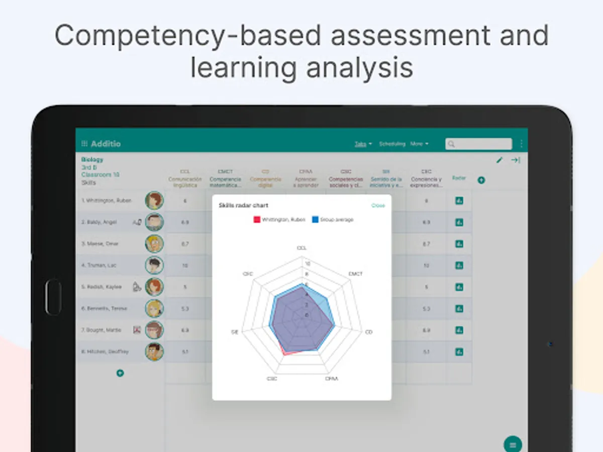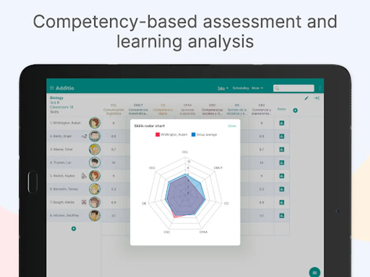 -Additio for Teachers: you can use all the functionalities Additio App offers, unlimited. You can skill assess through key skills, specific skills and evaluation criteria. Also, you can use the multiple-device option and activate synchronization among the devices to keep your data with you wherever you go.