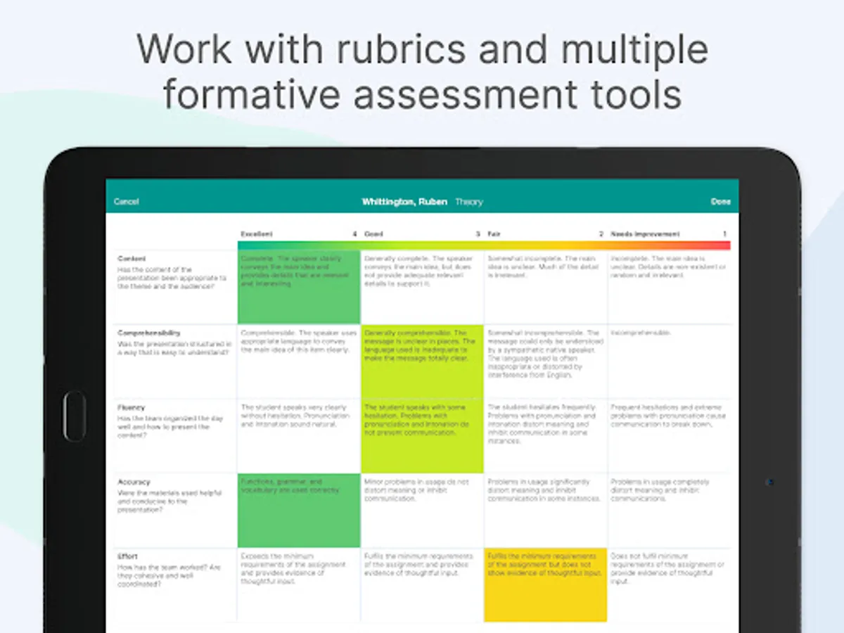 - 100% personalized rubrics with option for auto assessment and peer assessment.