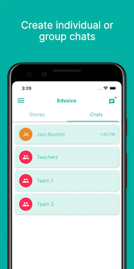 In addition to stories, where a flow of notifications is received, the app also features chats and groups. Unlike stories, these offer two-way messaging, which makes them ideal to work in groups and facilitate the information exchange with students and families.