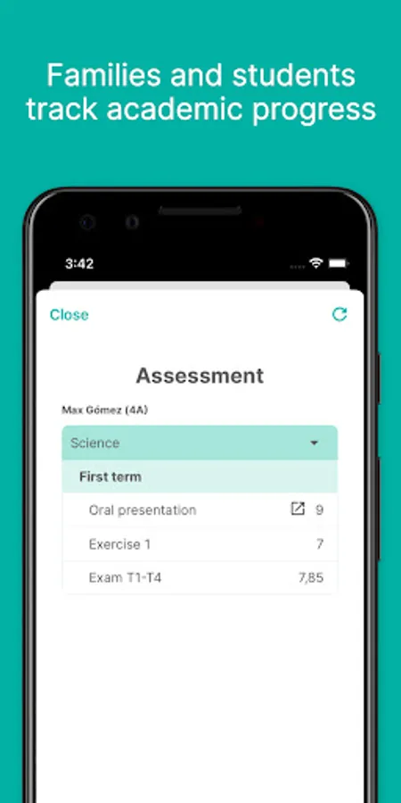 Through a feature called ‘stories’, parents and students receive updates and notifications from teachers and the school in real time. It allows to send a variety of message types, ranging from text messages to students’ grades, absence reports, calendar events and much more.