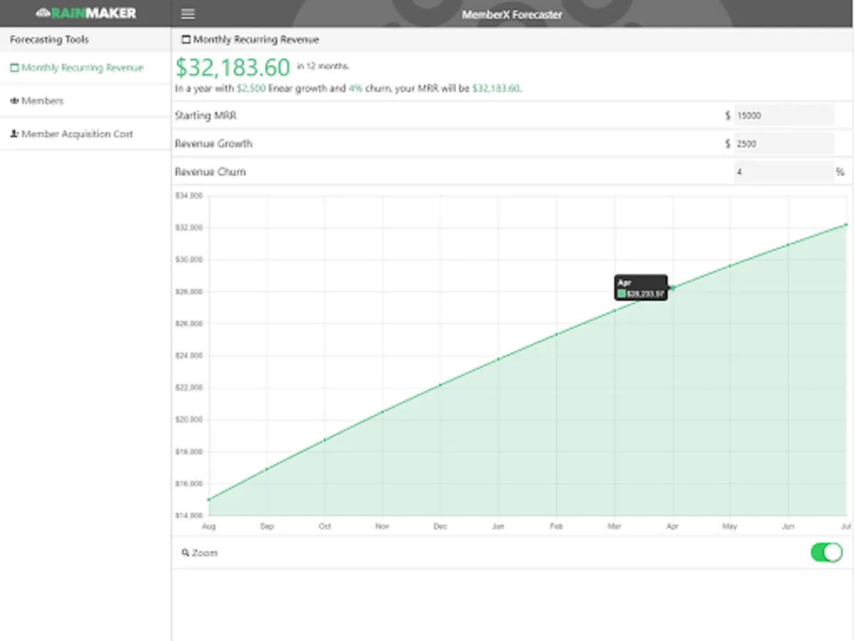 Discover the 3 key numbers to growing your membership business. MemberX Forecaster will help predict your Monthly Recurring Revenue, Member Count, and Cost of Acquisition of a Member. These numbers are crucial to growing your studio, gym, and other type of member driven businesses.