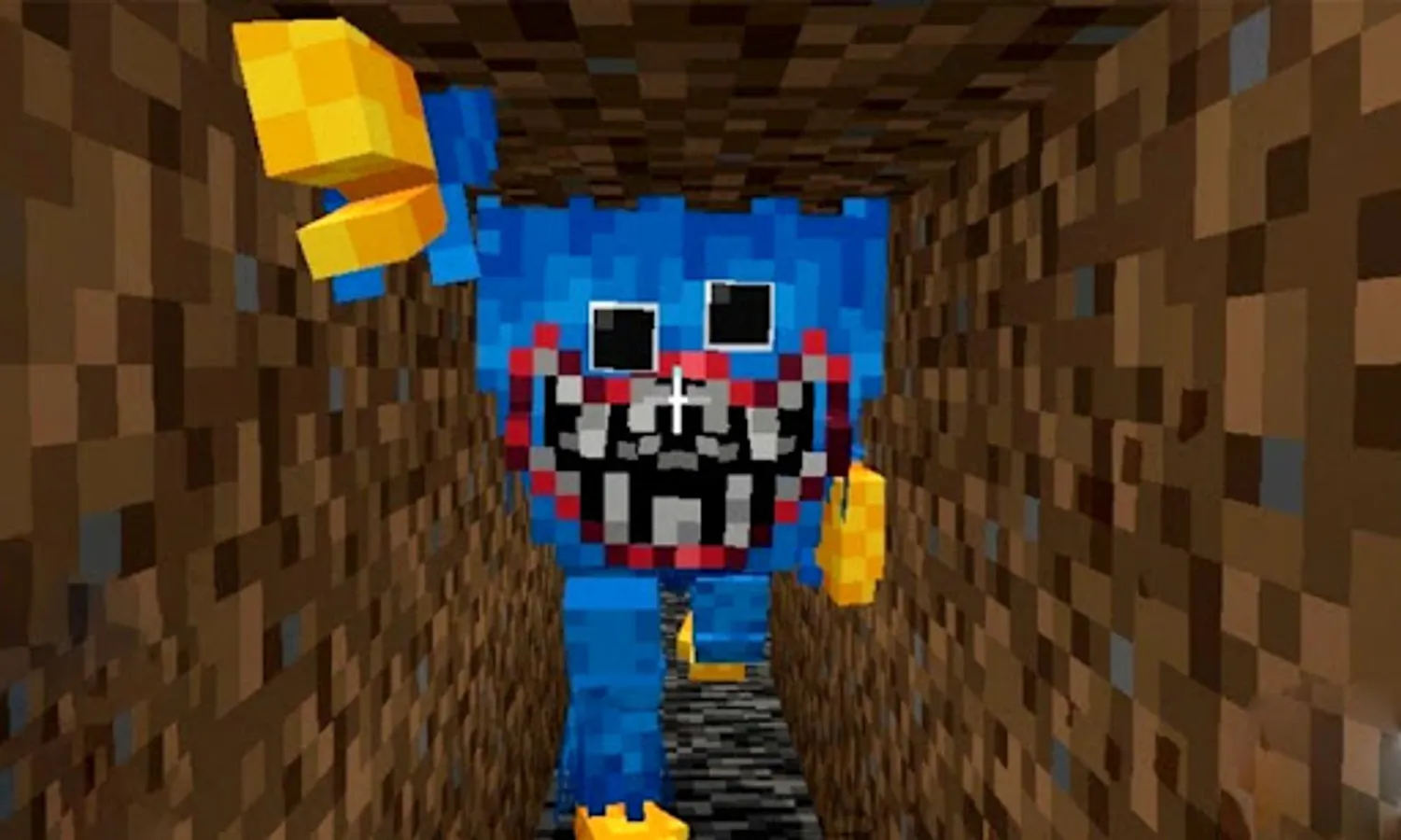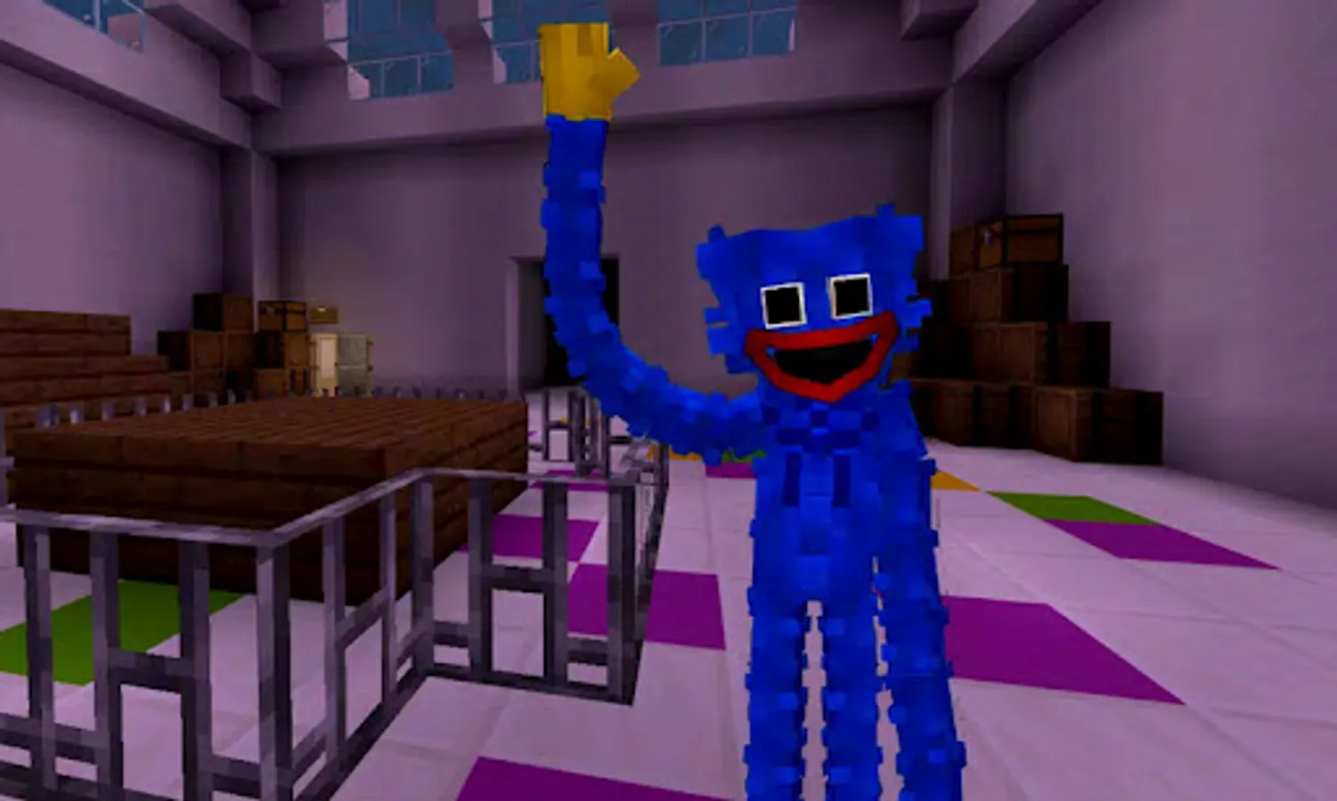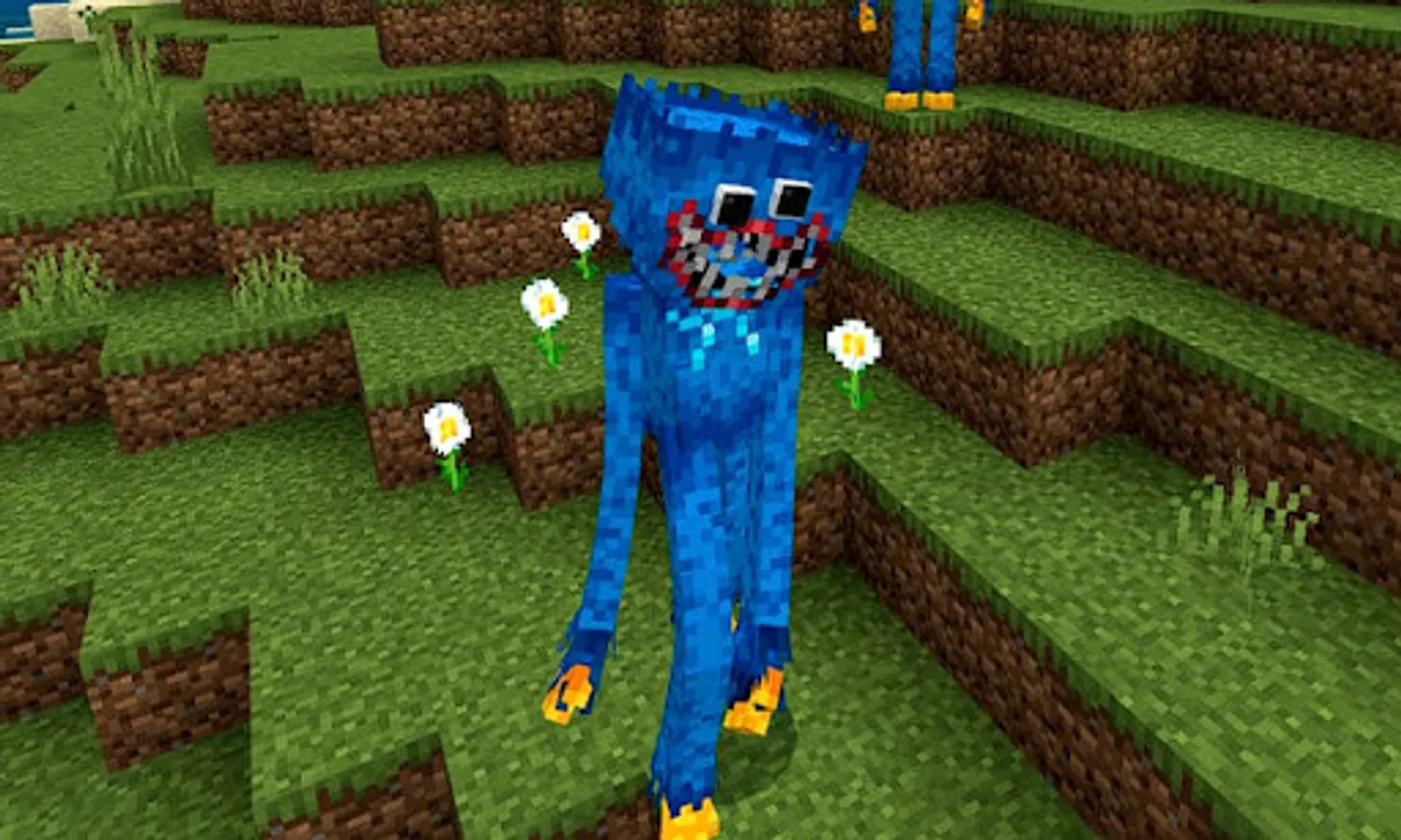 This mod for Minecraft is based on the popular horror game Bugui bugui, in which the player must discover various items, such as cassettes and other objects, in order to advance the plot. In Minecraft, Bugui is a toy that is quite tall and blue in color. This is the Poppy Playtime skin for MCPE. He is malicious, as though the experiment went wrong a very long time ago, and he is attempting to murder you.