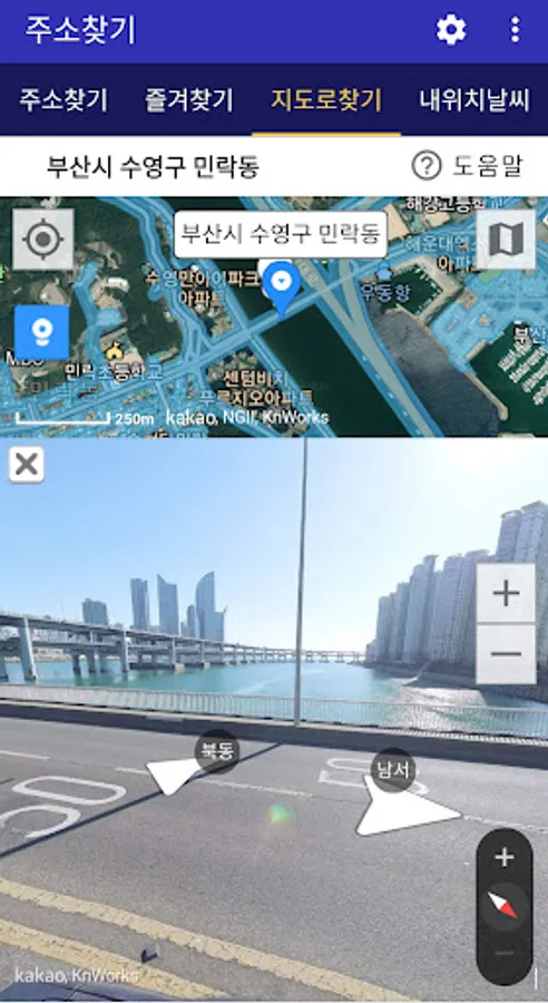 You can easily find address search, cross-country search, place name search, zip code, and view the road view.