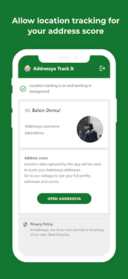 The Track it App is used along with the Addressya App for live location track to increase the address score. Addressya is about finding your way and being found. If you have a registered account with Addressya and looking to increase your address score , this app helps you achieve that with live location tracking.