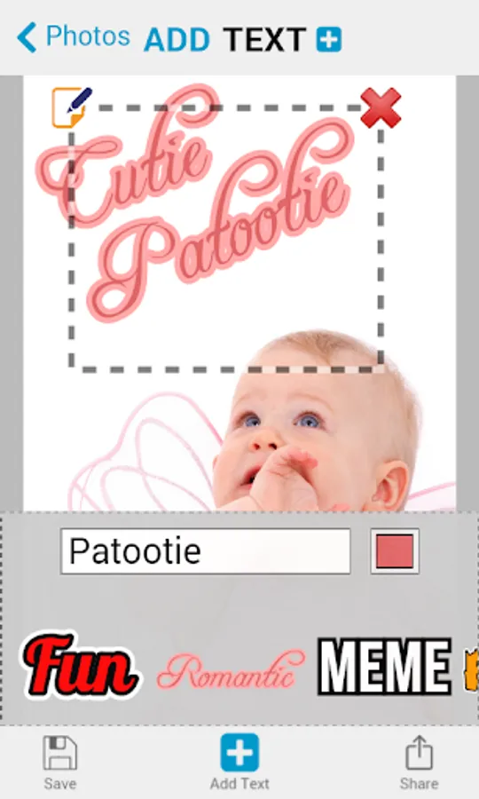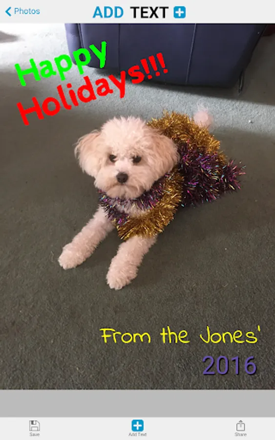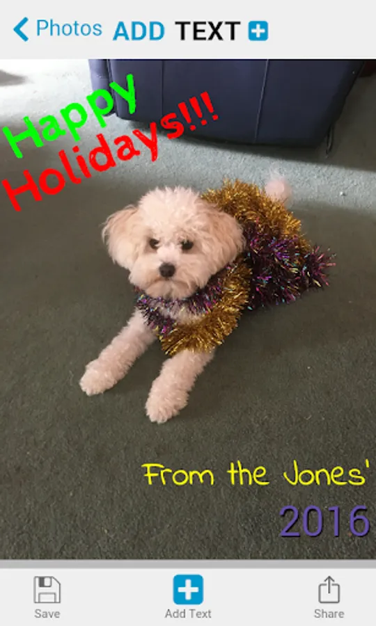 Add text to your photos quickly and easily. Lots of interesting styles.