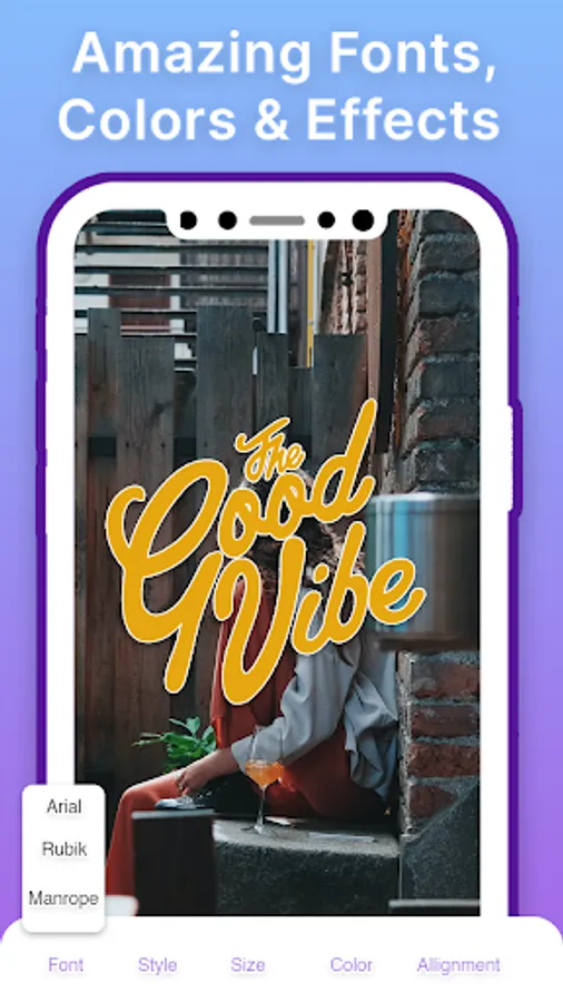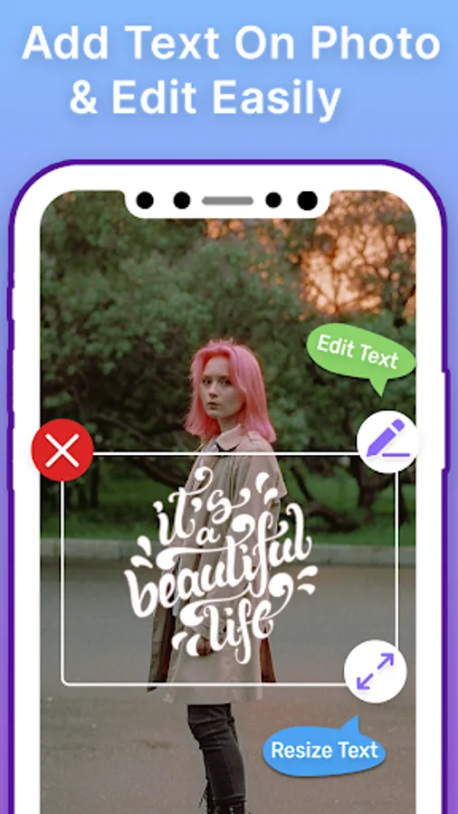 Use the photo text editor immediately to add text on photos completely free. With your mobile phone, you can easily create photo text with meaningful words. Text on photos in the easiest way to create and share your quotes with the world. Through text on photos, you can make your photos more cool and beautiful.