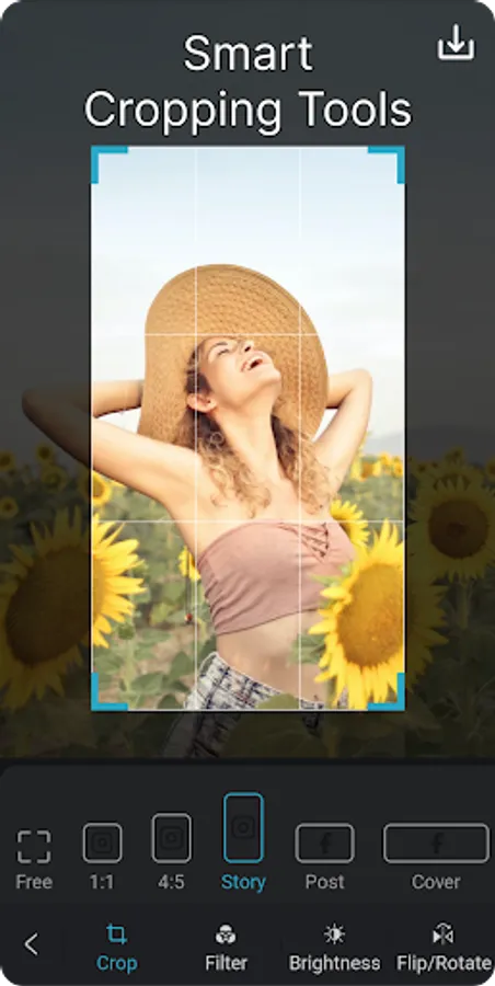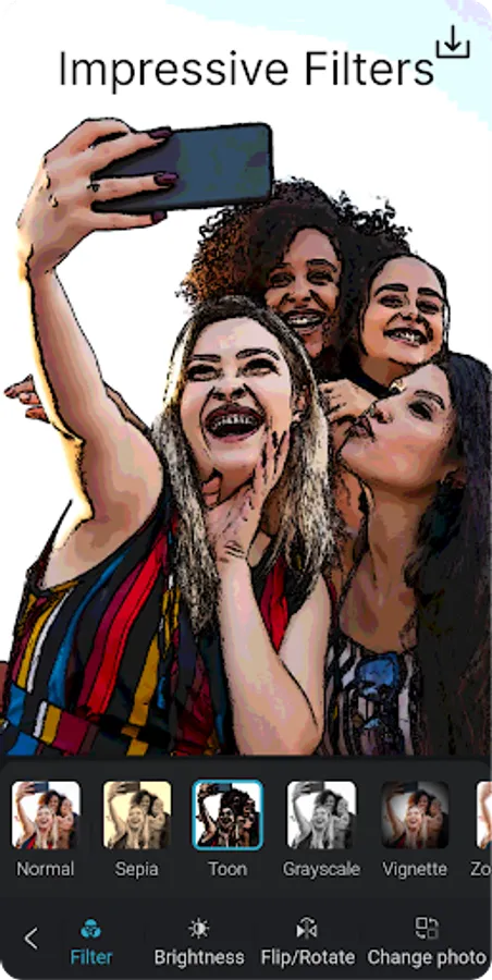 ✔️ Create multiple photos with impressive filters, smart cropping tool.