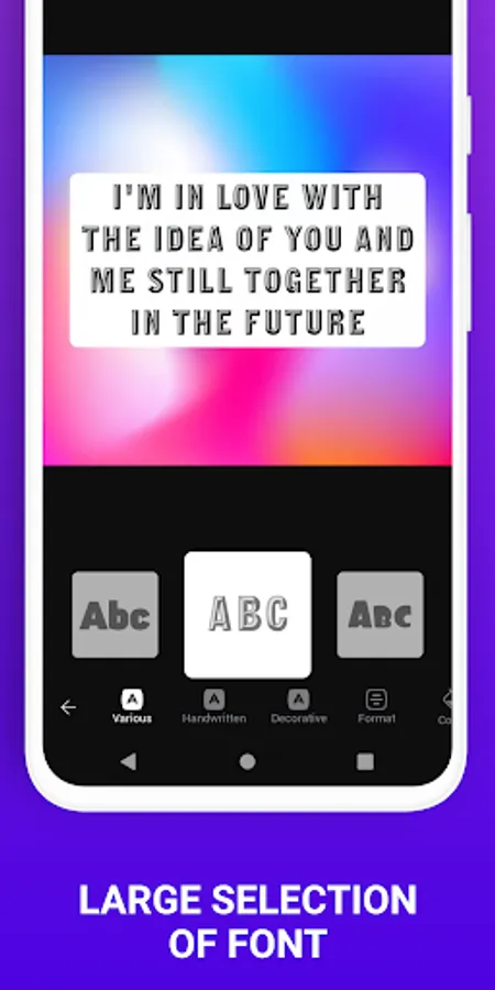 This is an all-in-one photo editor and text editor app for those who want to quickly create a social media post. All you have to do is choose a nice font and add a caption to the image. There are many options to write text on a photo. Try out different stylish fonts to create some fancy text on your picture. PNG photo editor app will help you easily add text on photo. Using our txt photo montage editor, you can easily create beautiful picture art in a short time, instead of wasting time editing with professional apps and features. Create beautiful inspirational quotes on images and pictures. This is the easiest photo maker to create quotes in a picture. The app already has various ready-made options for the best quotes and aphorisms.