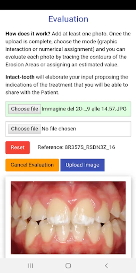 Intact-tooth is accompanied by an extensive collection of therapeutic protocols aimed at desensitization and remineralization of the teeth. The collection also includes pre-during and post orthodontic treatment protocols, in order to guarantee the health of hard and soft tissues. The choice of the appropriate protocol for the patient's needs is made by the professional to whom a reference library is made available based on the scientific review of the literature. The adoption of all the pre-identified and assigned therapeutic protocols through the App will allow analysis of statistical efficacy data and these data can be used for scientific research purposes.