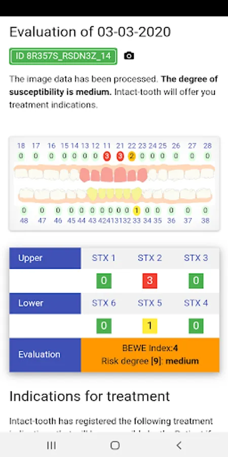 Intact-tooth is an App that offers all professionals in the sector (dental hygienists, dentists, orthodontics and pediatricians) a preventive support tool capable of assessing and monitoring over time the level of erosion of the enamel surface in pedodontic, adult, orthodontic patients with mobile orthodontics, fixed and with invisible aligners. It also allows to indicate the adoption of protocols aimed at the re-mineralization of the enamel and the consequent reduction in the incidence of caries.