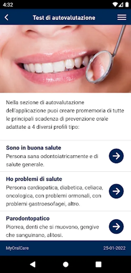 The application is connected to a network of Dental Hygienists who have decided to commit themselves day by day, always by your side, even on your smartphone, with one goal: the health of your smile.