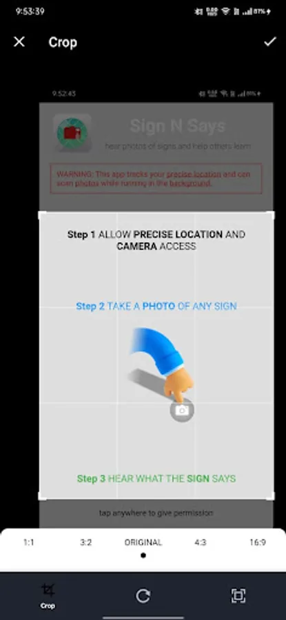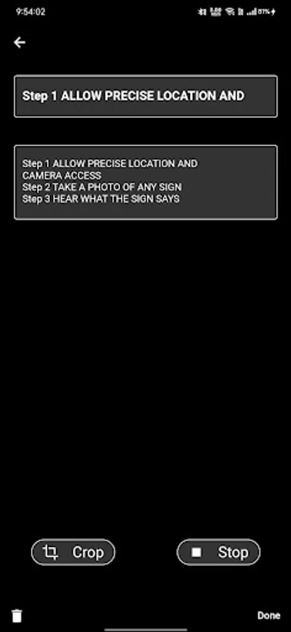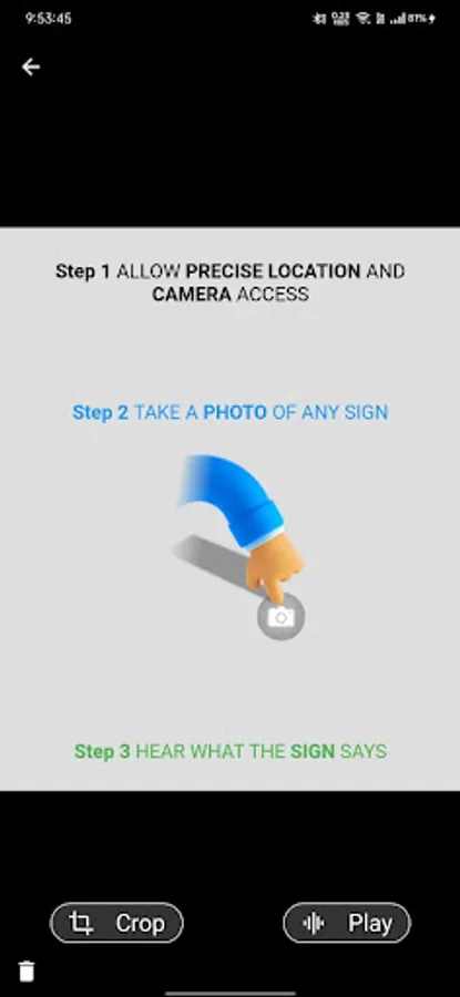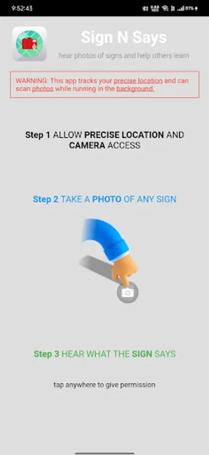 This app allows you to take a photo to read any sign, then saves it for others to hear.