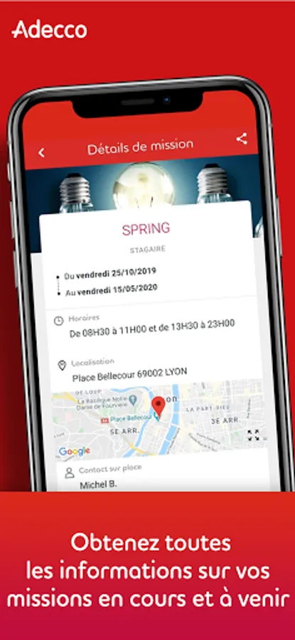 • MISSIONS: Get the location, date and on-site contact of your current and upcoming missions. Add the mission to your personal calendar. Declare an absence or a delay.