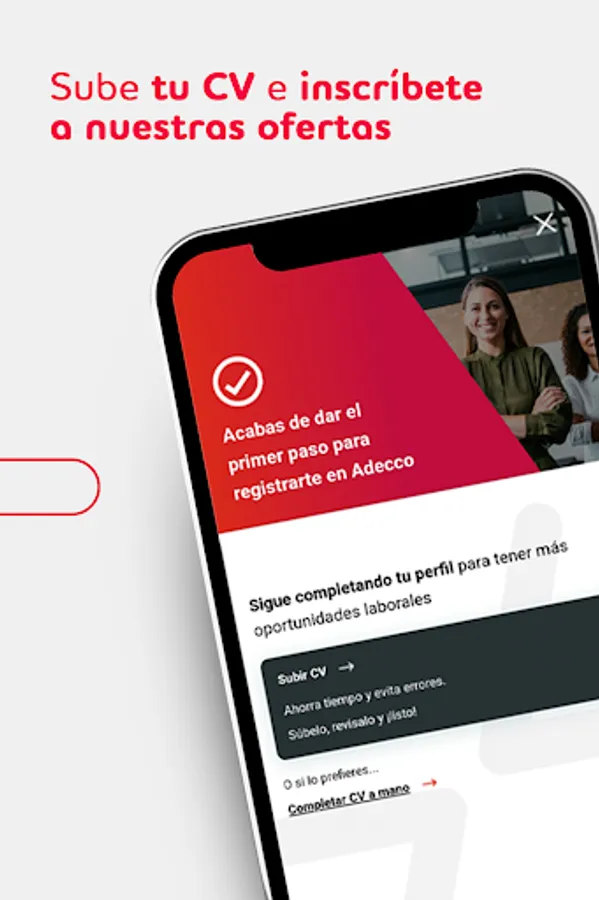 Upload your CV and fill in your data automatically. If you prefer, you can also register manually.