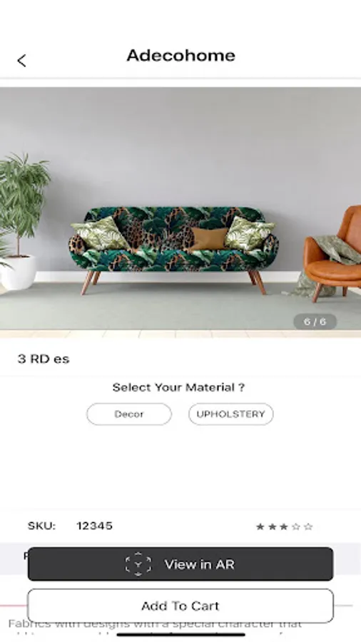 With our app you can use our AR technology that allows you to see a preview of the item you would like to purchase in your space through your screen in the comfort of your home.