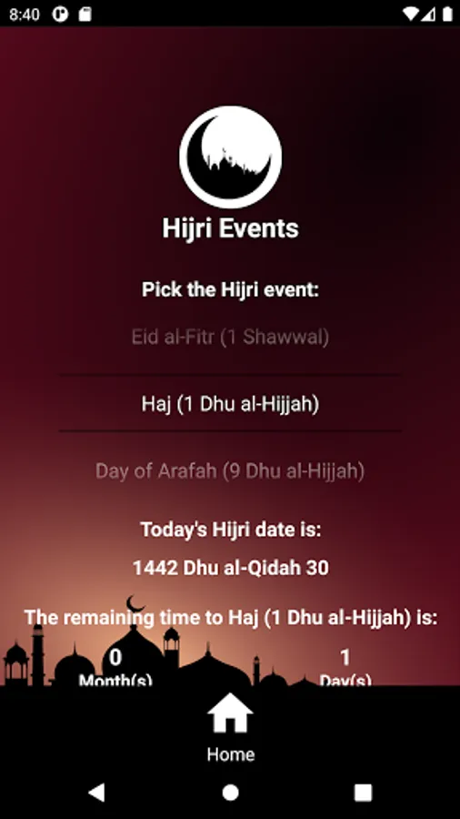 •The remaining days for the main Hijri Events such as Ramadan, Eid(s), and Hajj Season
