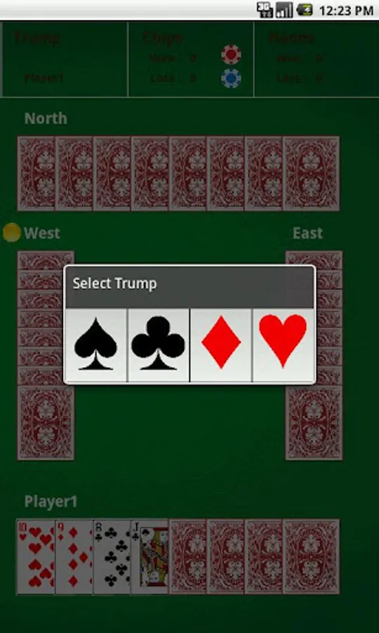 Enjoy your favorite Omi game on the way with your android mobile. This game offers classical four players card game. You have to play with corporate game play with opposite side computer player to defeat other two computer player.