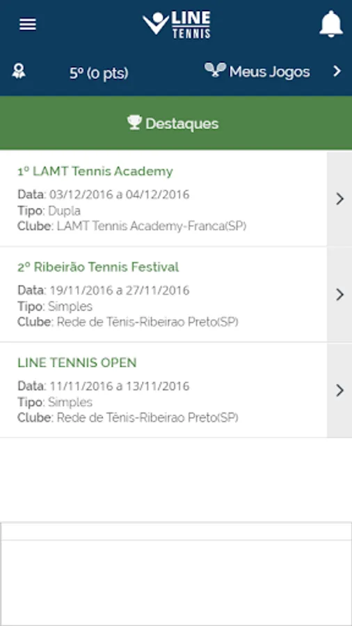 LineTennis is an app that manages tournaments of tennis sport. Providing tools to facilitate the organization, management and practicalities of tennis players. With events held through the Line Tennis application, the organizer will optimize your time and disseminate information about the simple and fast event.