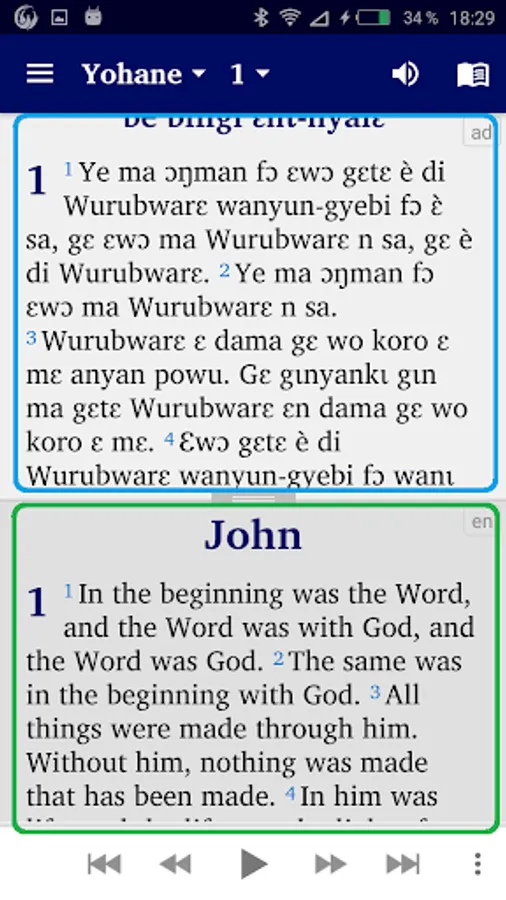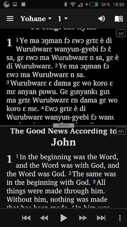 The audio has been synchronized with the text and highlights each verse like karaoke when you push play. You can also start listening anywhere within a chapter by tapping on the verse you want to hear.