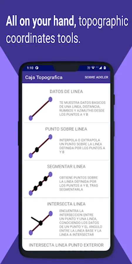 Take with you this topography app full with tools to work with plane coordinates for your field topography jobs with total station.