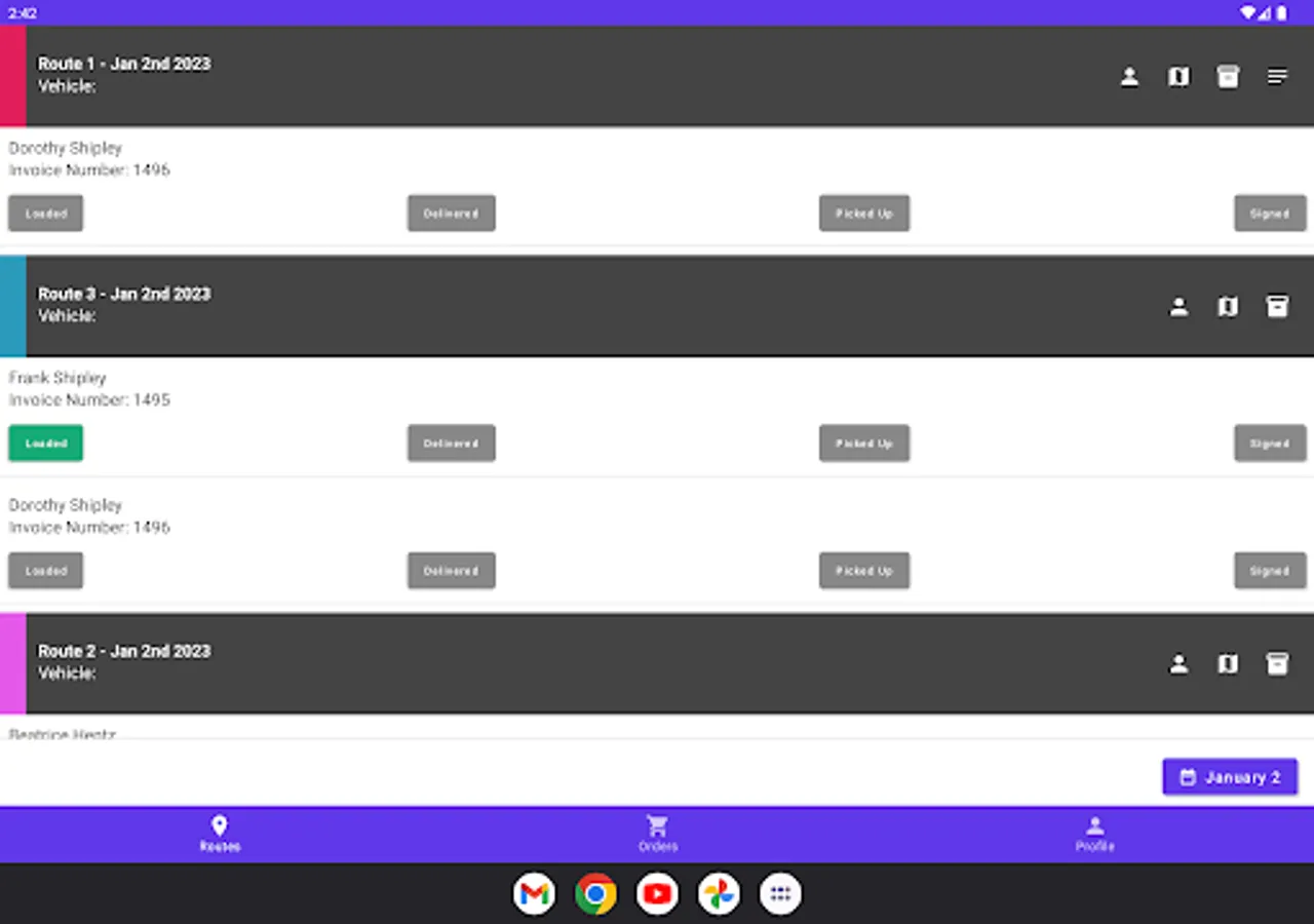 The Adelie Logistics Mobile App is a companion to the Adelie Logistics Inventory Tracker software. With the app, you can create routes, assign routes to specific employees, view your rental orders, update the status of a delivery, pick up, or will call order, view items for loading trucks for deliveries and generate digital contracts for customers to sign when accepting rental items.