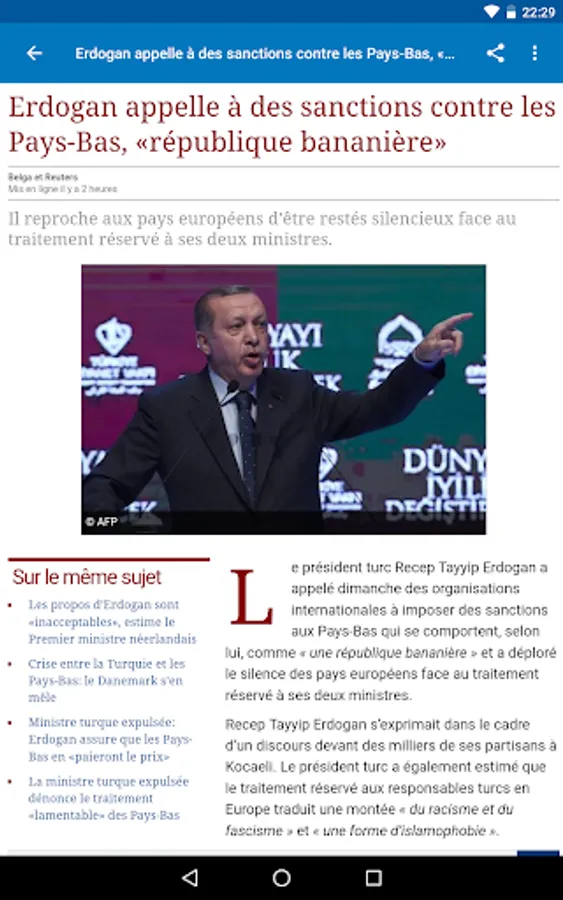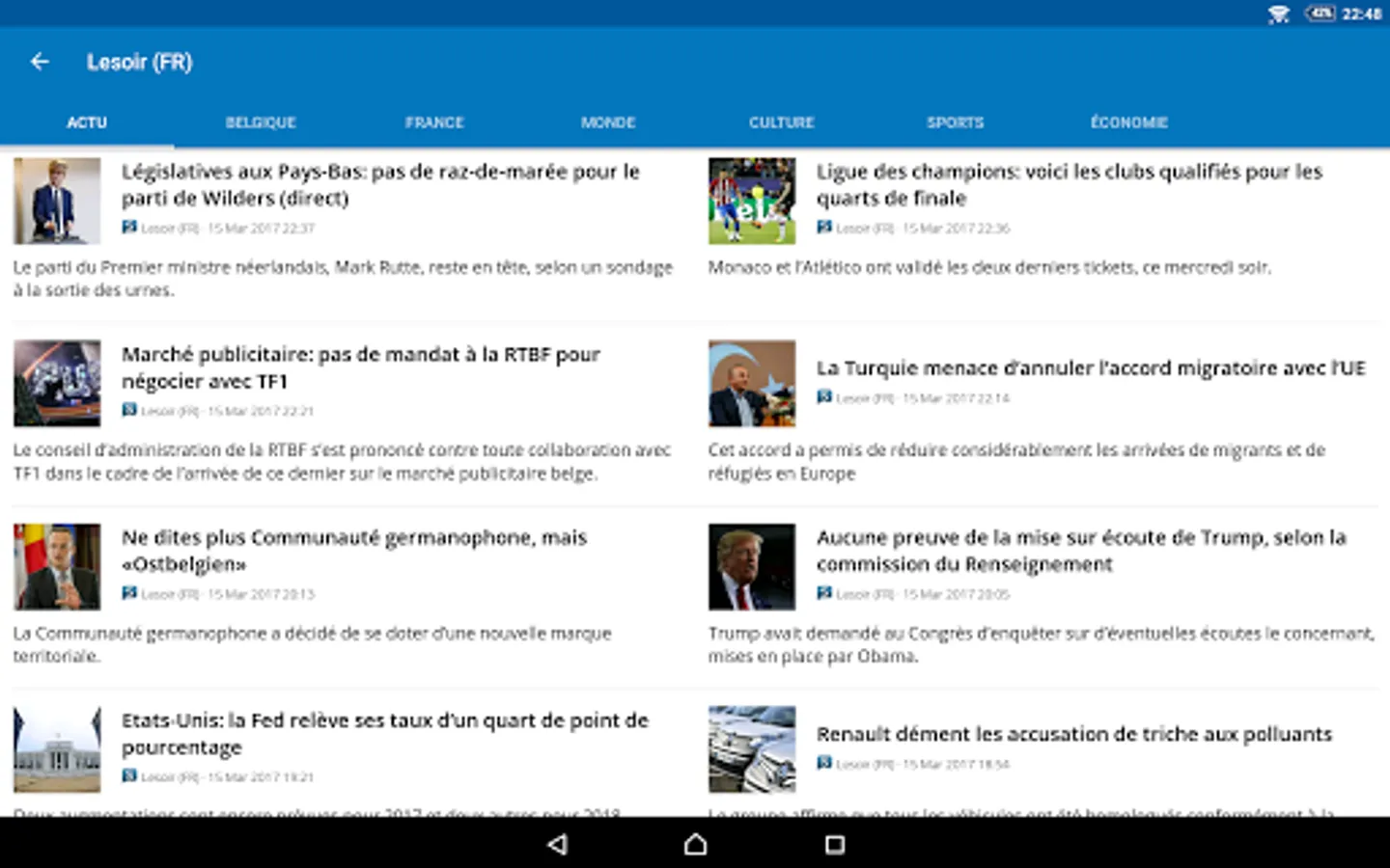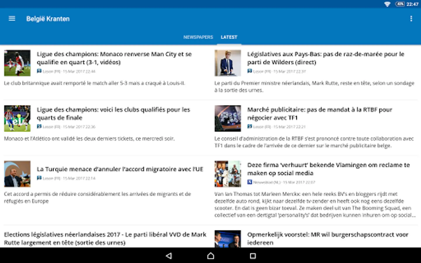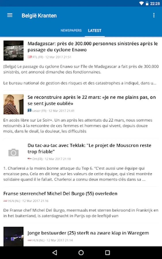 Belgium News is a fast and easy way to read news on Android. It gives you easy access to read the most popular newspapers from Belgium.