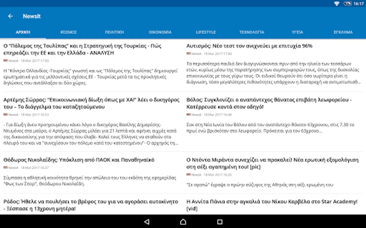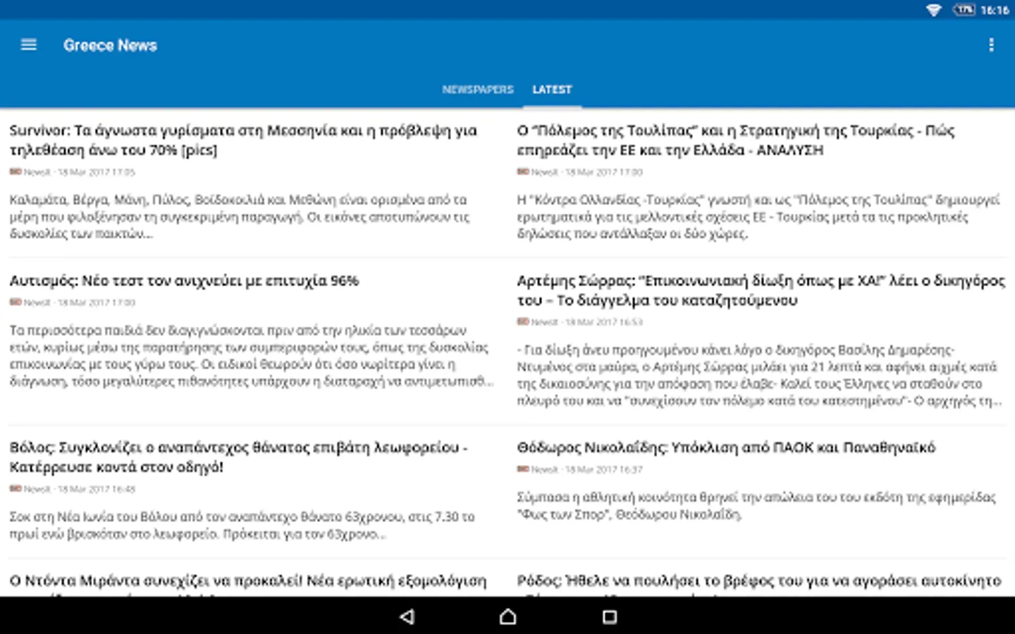 It's a fast and easy way to read Greece (Ελλάδα) News (Ειδήσεις) in Greek (ελληνικά) on Android.