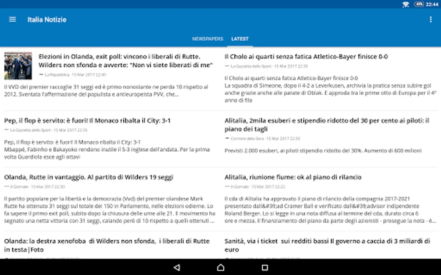 Italia News is a fast and easy way to read news on Android. It gives you easy access to read the most popular newspapers from Italia.
