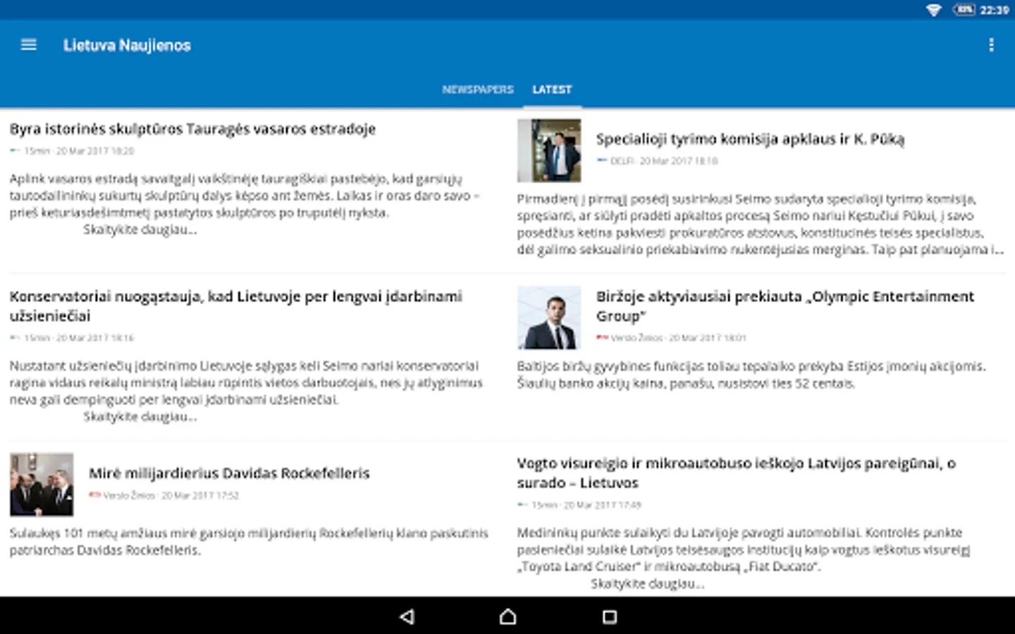 Lietuva Naujienos gives you easy access to read the most popular news sources from Lithuania (Lietuva) on your Android device. Take this app with you and stay informed with access to the latest news.