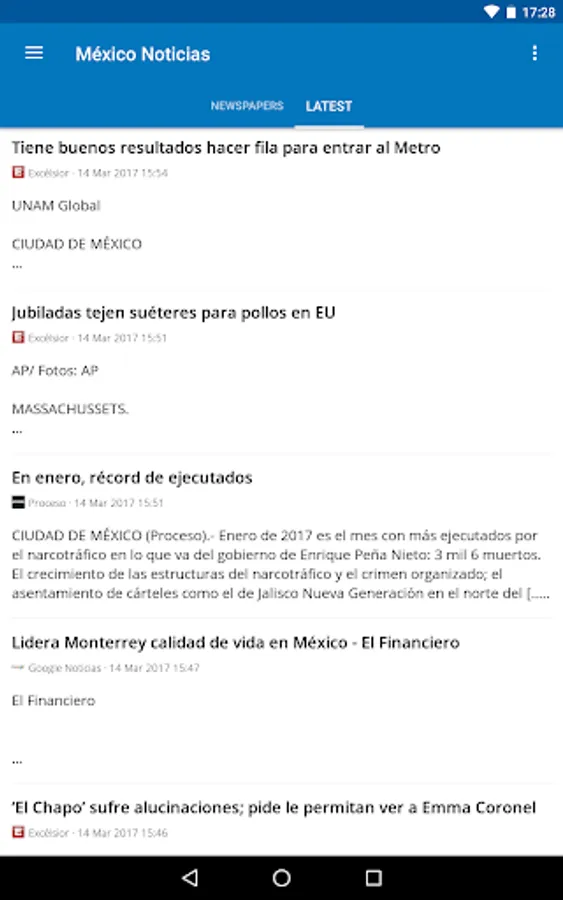 México News (Noticias) is a fast and easy way to read news on Android. It gives you easy access to read the most popular newspapers from México.