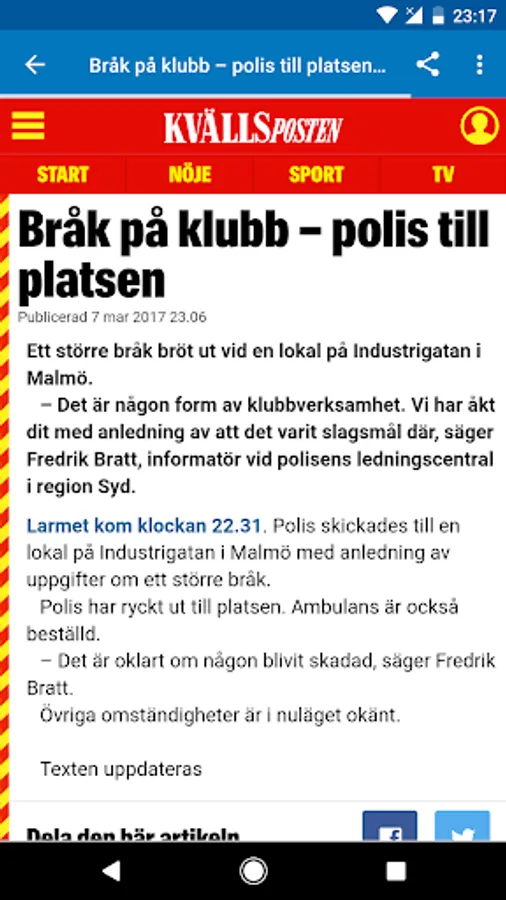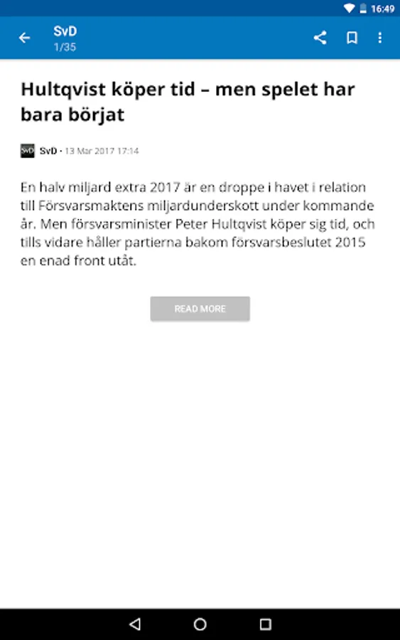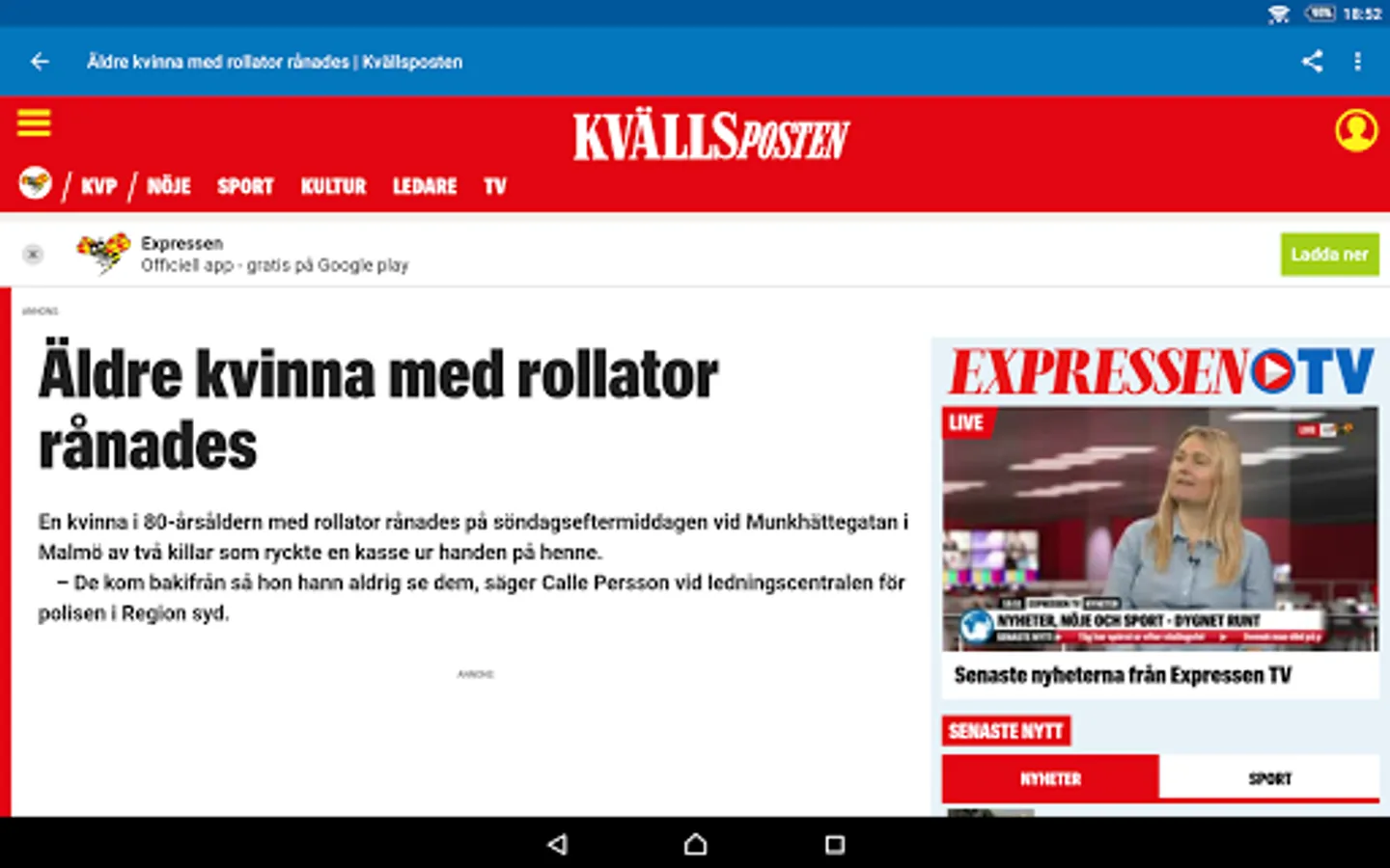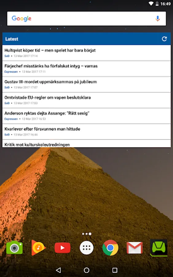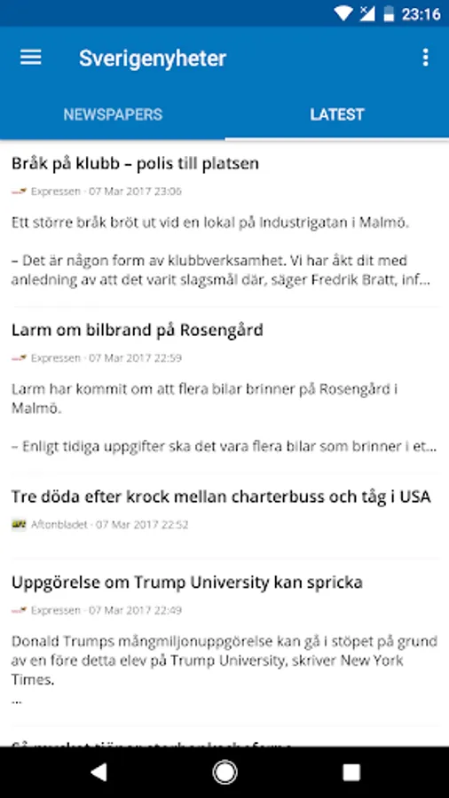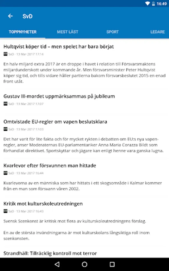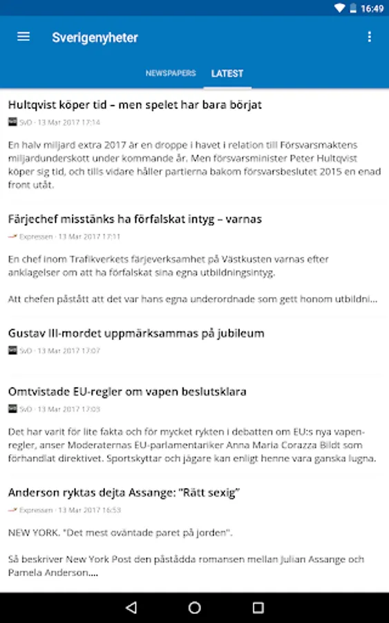 Sweden News is a fast and easy way to read news on Android. It gives you easy access to read the most popular news sources from Sweden.
