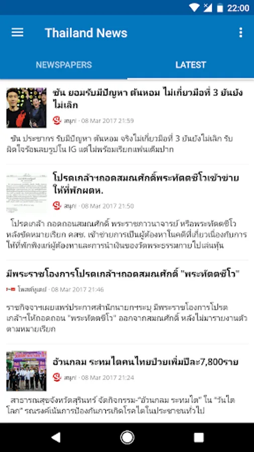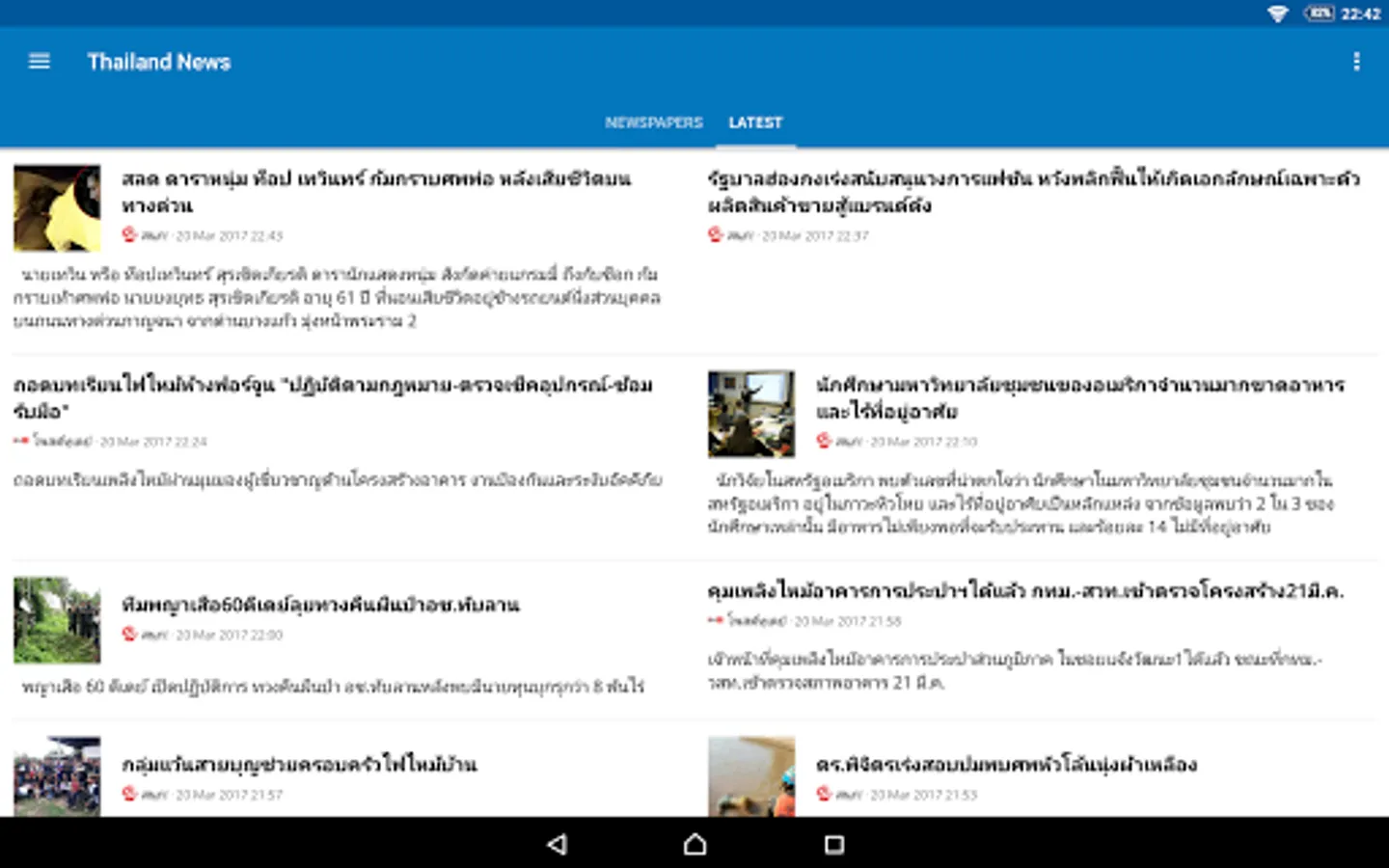 Thailand (สยาม) News(ข่าว) is a fast and easy way to read Thailand (สยาม) News (ข่าว) in Thai (ภาษาไทย) on Android. It gives you easy access to read the most popular news sources from Thailand (สยาม), take this app with you and stay informed with access to the latest news(ข่าว).