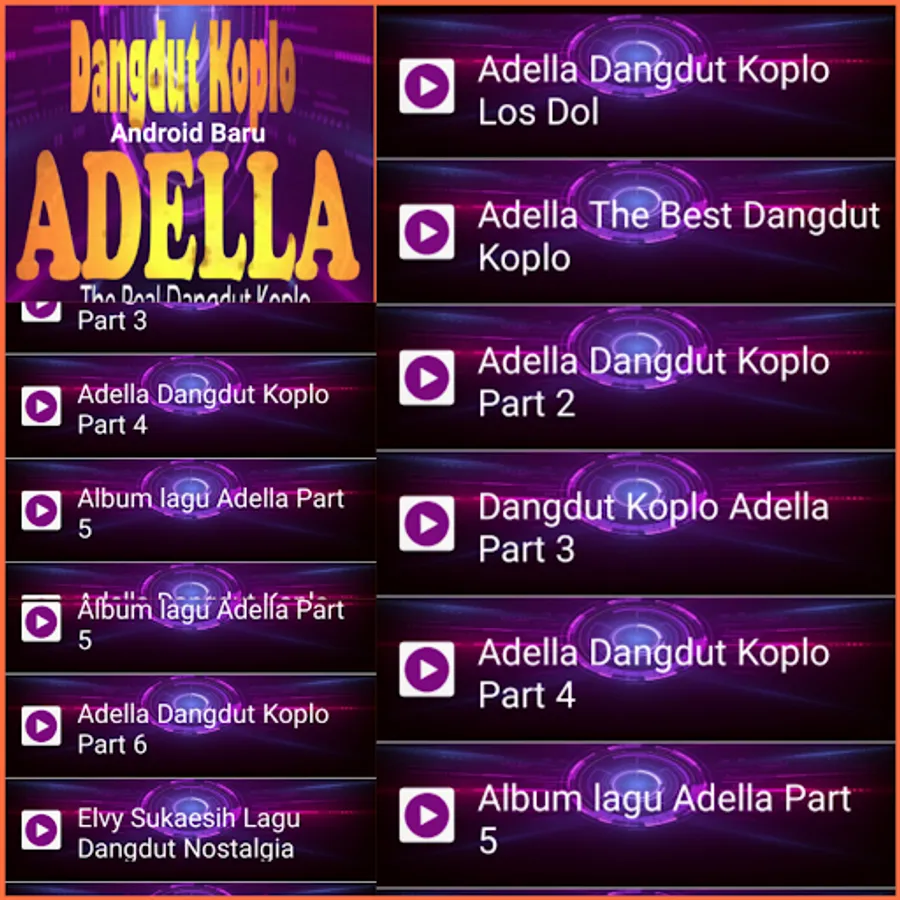 In the Adella Song Warehouse application, there are hundreds of dangdut koplo songs and many more dangdut songs from singers other than OM ADELLA.