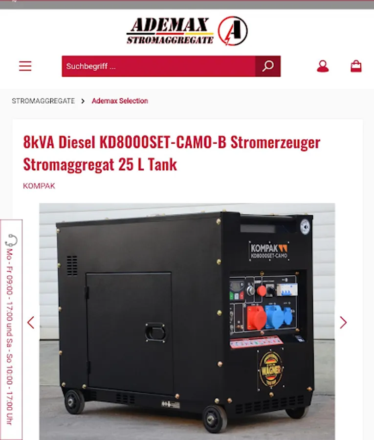 We guarantee a very long supply of spare parts for all products in our range. Our brands include CAT, BLACK + DECKER, HYUNDAI, Dewalt, ITC Power, Kompak, Könner & Söhnen, FOGO, ENERGY, GREEN POWER, FEESER, AiPower, Ecoflow, as well as our own brand ADEMAX for individual custom-made products, which are manufactured by our German manufacturer in be made in Berlin. We have been selling Black + Decker power units exclusively for Europe since 2022.