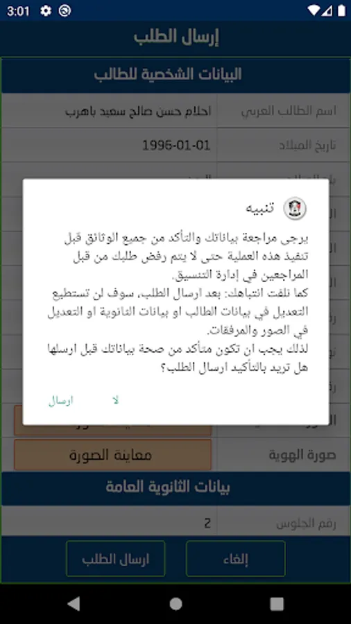 In the interest of the University of Aden to protect the Yemeni society, and to preserve the personal data of applicants to the university.