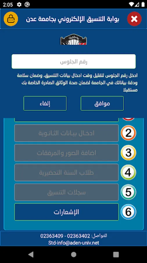 The application of the electronic coordination portal was issued for applicants to study at the University of Aden, to allow the applicant to submit a coordination request at the university via their mobile phone from anywhere and at any time.