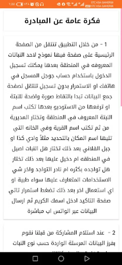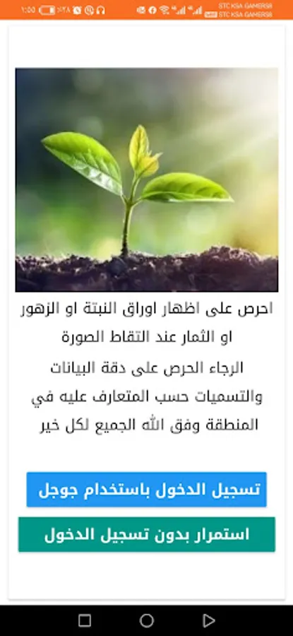 A practical application that facilitates the collection of plant information and sending it directly to the initiative management is simple and does not consume a lot of data in order to document plants to spread awareness of their importance and protection