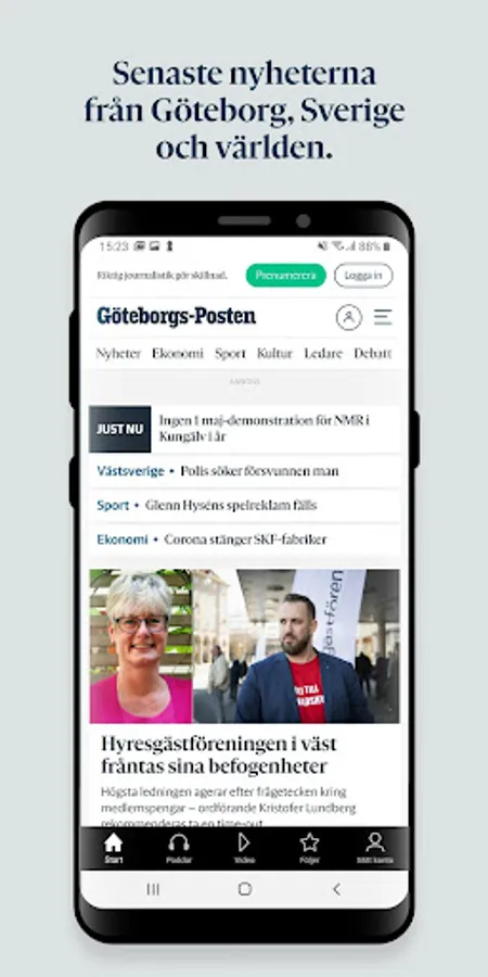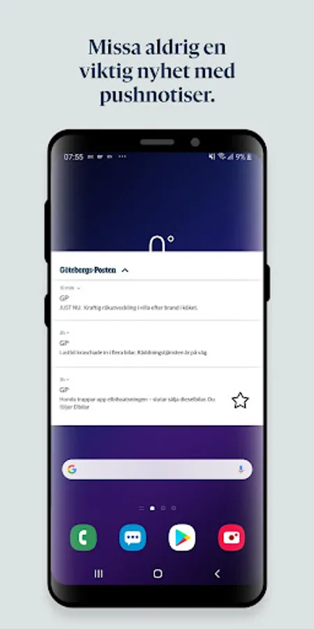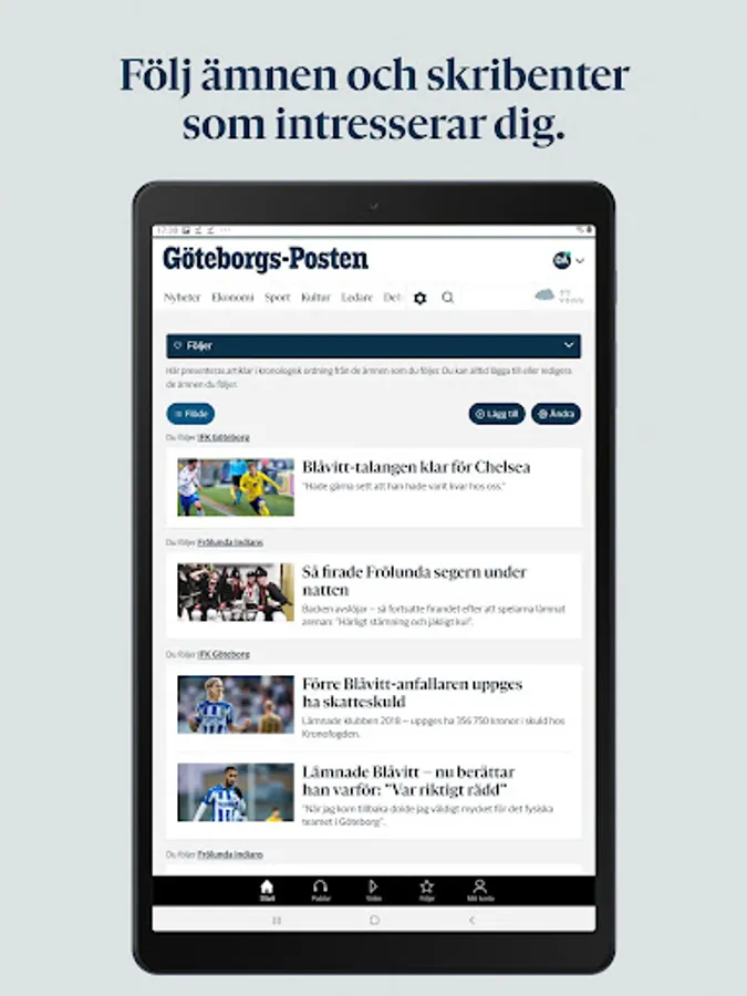 With the Gothenburg Post's app you can follow the topics and writers you care about and create your own news feed. You can also set up so that you receive a push note when something has happened within your guarded areas.