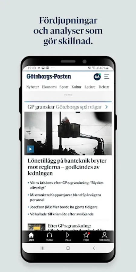 Whether you feel like reading, watching or listening, Göteborgs-Posten has something for you. Watch the latest news events with GP TV, listen to one of our podcasts or meet our reporters on GP Live.