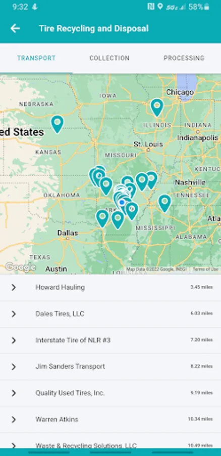 The Tire Recycling and Disposal feature helps Arkansans properly dispose of used tires by finding nearby waste-tire collection centers and disposal sites.