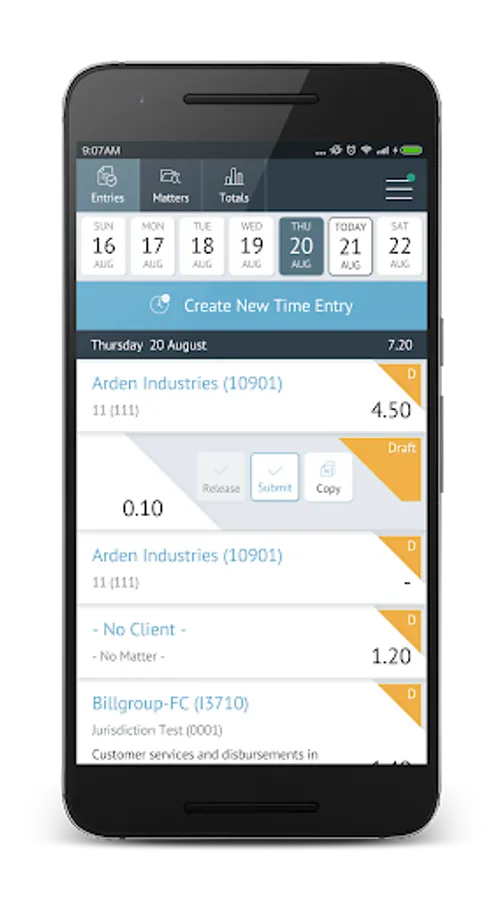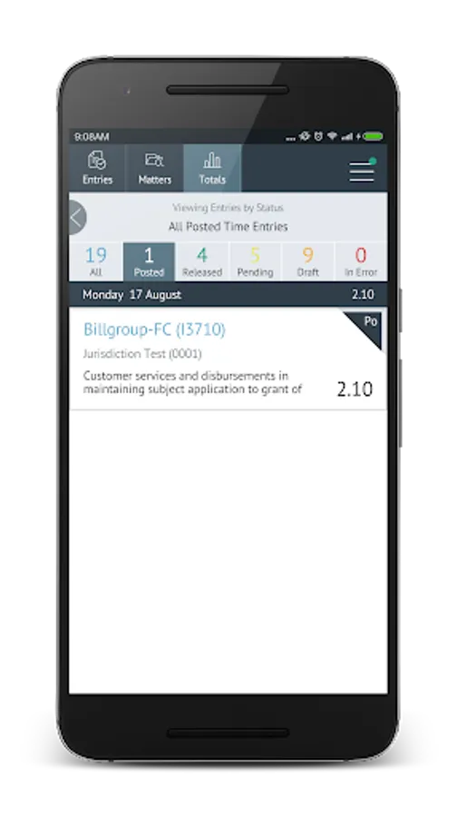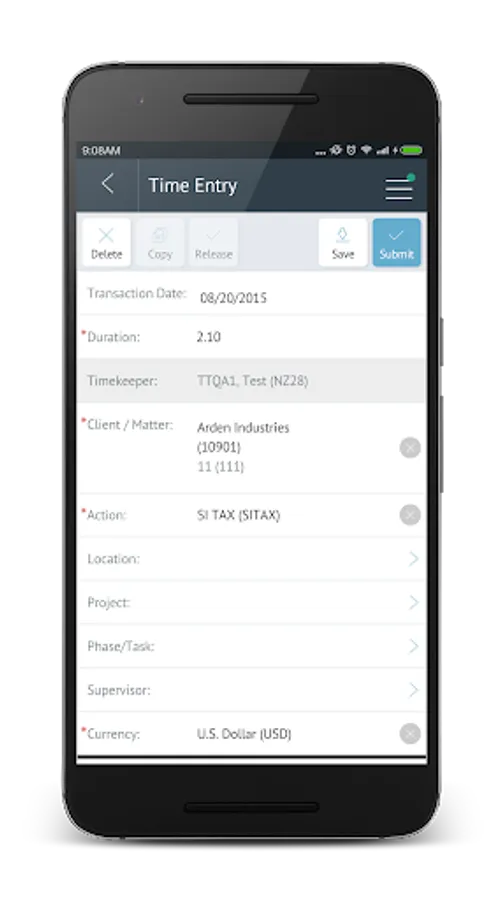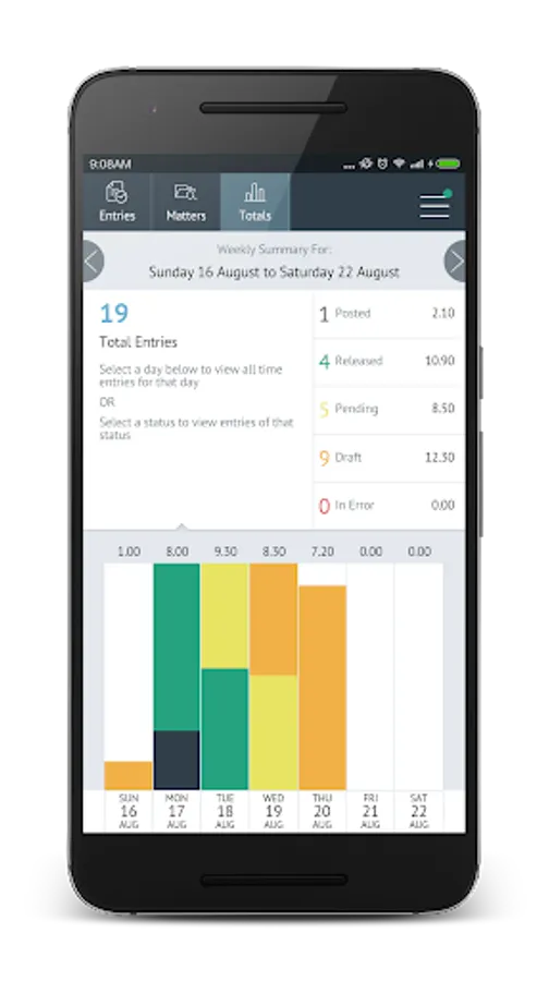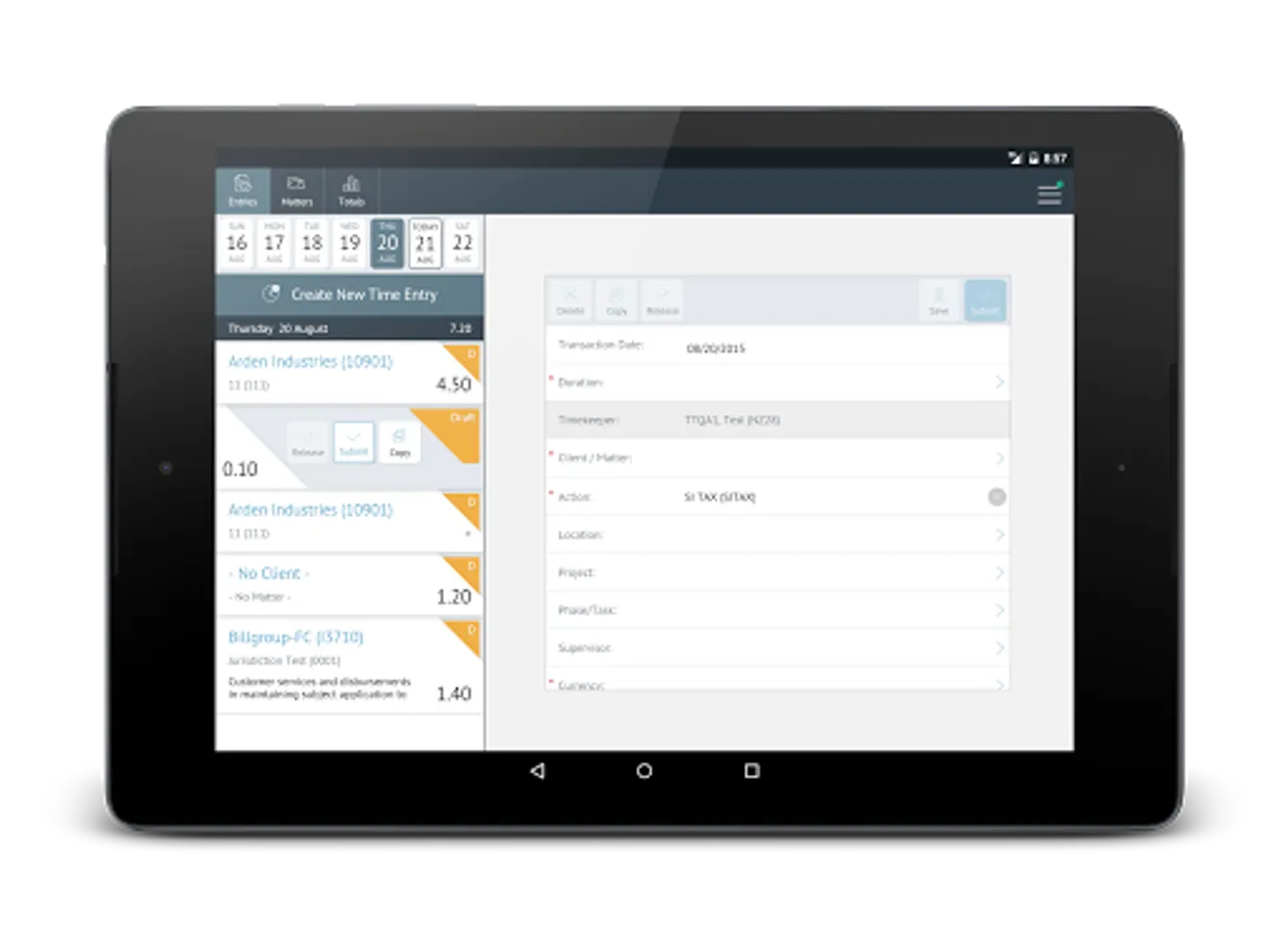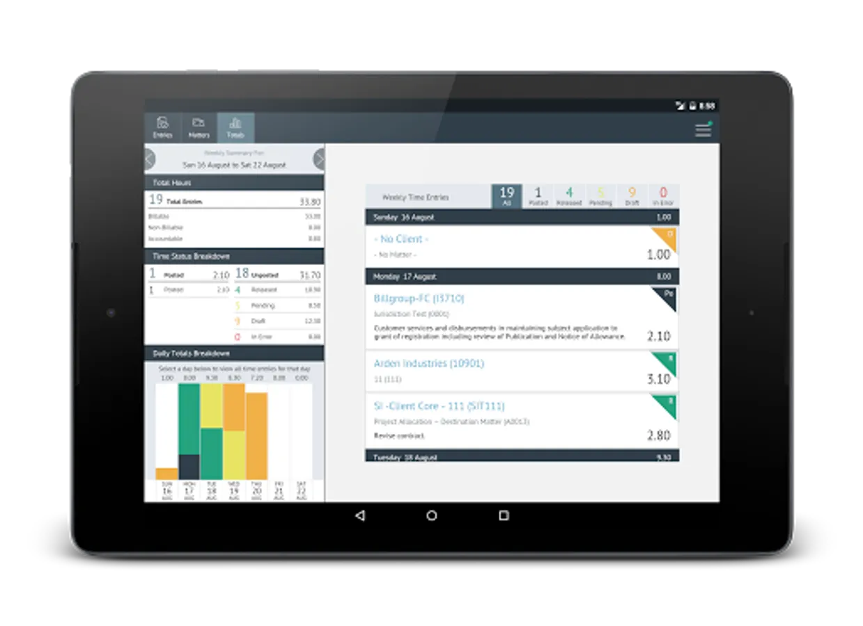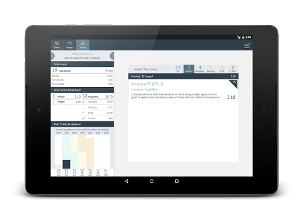 Capture real-time and immediate information while connected to Aderant Expert or even offline. Other functionality available includes reviewing and editing existing time entries, display of actual vs. minimum targets, and use of a recent matters list to speed up entry.