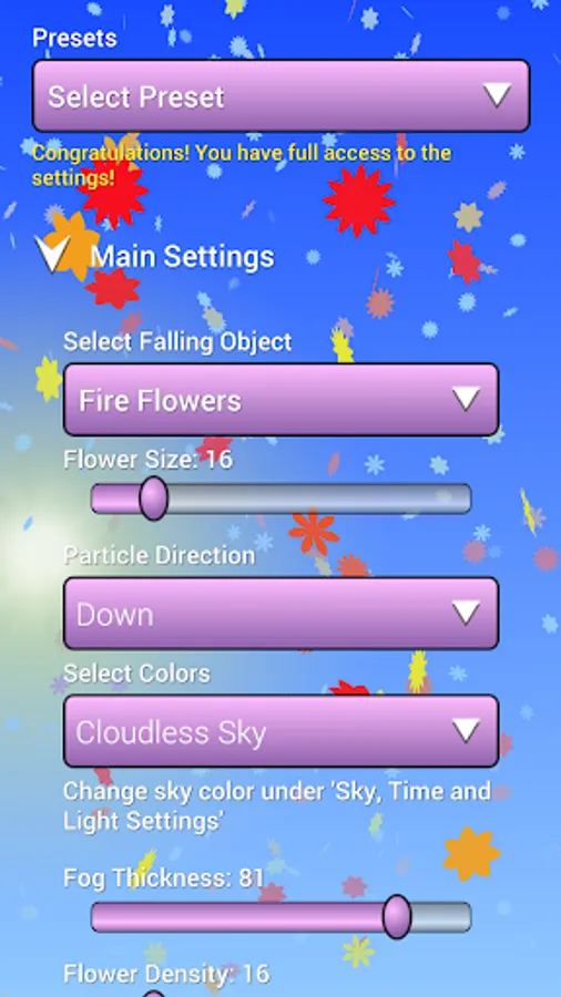 A Live wallpaper with lots of moving stylized flowers. You can custmize this with tons of settings, or choose from the presets. Some settings: